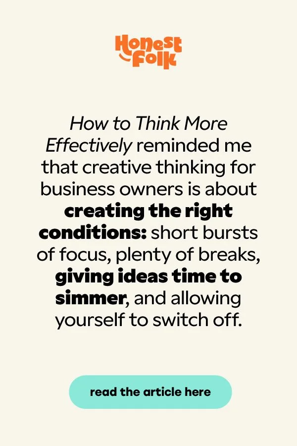 How to Think More Effectively reminded me that creative thinking for business owners isnβt about forcing brilliance. Itβs about creating the right conditions β short bursts of focus, plenty of breaks, giving ideas time to simmer, and allowing yourself to switch off.